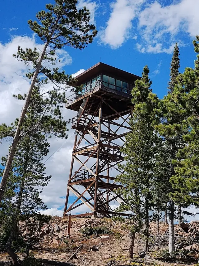 Wieże przeciwpożarowe są niczym latarnie morskie lasu — konstrukcje położone na skalistych wzgórzach lub chwiejnych palach, z których samotni strażnicy niegdyś obserwowali horyzont w poszukiwaniu dymu zwiastującego zbliżające się pożary. Wiele wież nie jest już używanych i zostało przekształconych w schroniska, w których goście spędzają noc pod baldachimem drzew, ciesząc się towarzystwem wiewiórek i gniazdujących ptaków. Haczyk? Często są one bardzo popularne i rezerwowane z kilkumiesięcznym wyprzedzeniem, więc należy się spieszyć! Spruce Mountain Fire Lookout w lasach Wyoming jest jednym z takich miejsc. Nie ma tu instalacji wodno-kanalizacyjnej i elektryczności, ale naprawdę, rekompensują to niemożliwe widoki na dziką przyrodę i atmosfera miejsca.