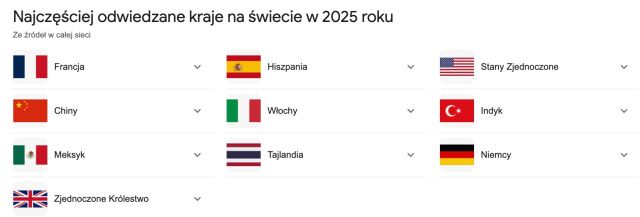Oto lista najczęściej odwiedzanych krajów na świecie w 2025 (póki co, ale zapewne do końca roku zbyt wiele się już nie zmieni) przygotowana na podstawie najnowszych dostępnych statystyk światowej turystyki.