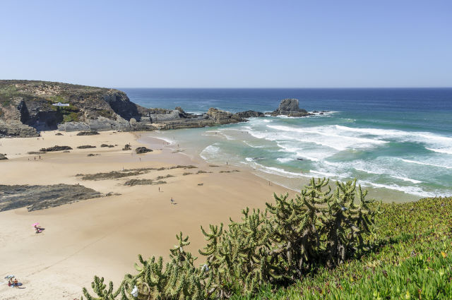 Jadąc w dół, dotrzecie do Zambujeira do Mar, znanej przede wszystkim z pięknej plaży – Praia da Zambujeira do Mar – która rozciąga się u stóp wysokich klifów. Plaża ma złocisty piasek i otoczona jest skałami, dzięki czemu osłonięta jest od wiatru i tworzy wyjątkowy krajobraz. Jest świetnym punktem do podziwiania zachodów słońca – widok z klifów na ocean należy do najbardziej malowniczych na całym wybrzeżu Alentejo. Miasteczko zachowało swój tradycyjny charakter, z bielonymi domkami, wąskimi uliczkami i kilkoma restauracjami serwującymi świeże ryby i owoce morza.
