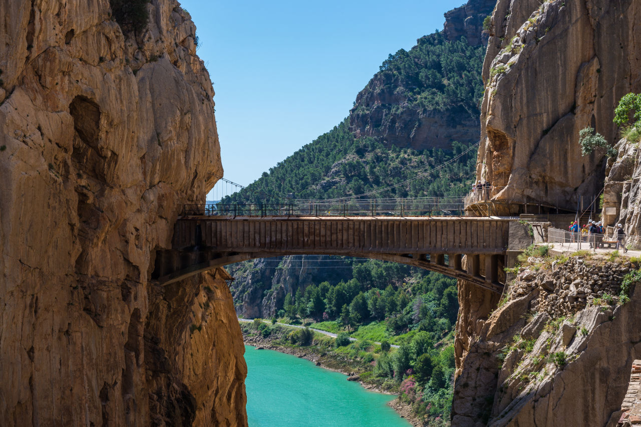 Caminito del Rey to ścieżka powietrzna wbudowana w mury wspomnianego Desfiladero de los Gaitanes, przylegająca do wąwozu o długości 3 kilometrów, z długimi odcinkami i szerokością zaledwie 1 metra. Rozpoczyna się w gminie Ardales, przecina gminę Antequera, a kończy się w El Chorro.