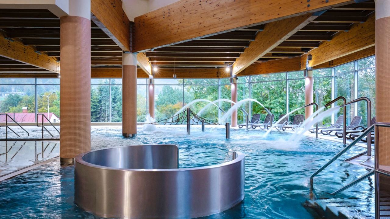 W hotelu możecie korzystać bez ograniczeń z aquaparku z basenami, zjeżdżalniami, jacuzzi i saunami, a także z nowoczesnej strefy SPA & Wellness. Po dniu pełnym relaksu lub górskich spacerów, czekają na Was obiadokolacje w hotelowej restauracji.