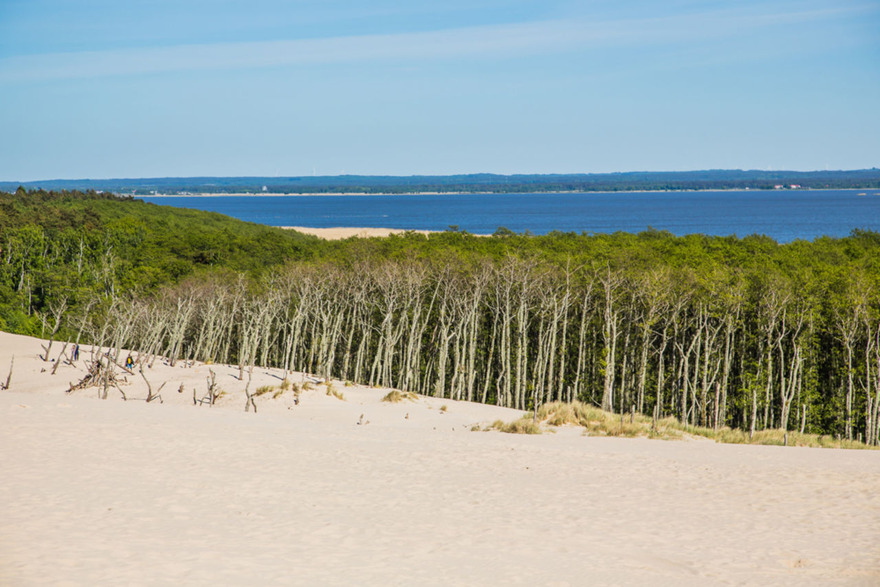 Łeba to znana miejscowość wypoczynkowa na polskim wybrzeżu. Miasteczko otoczone jest z trzech stron wodą, od północy morzem Bałtyckim, od zachodu jeziorem Łebsko, a od wschodu jeziorem Sarbsko. Najbardziej znaną atrakcją są ruchome wydmy w Słowińskim Parku Narodowym. Wysokie na 30-40 m wydmy poruszają się pod wpływem wiatru z prędkością dochodzącą do 10 m na rok. Ruchome piaski tworzą przepiękny pustynny krajobraz, unikatowy w Europie, zwany często polską Saharą.