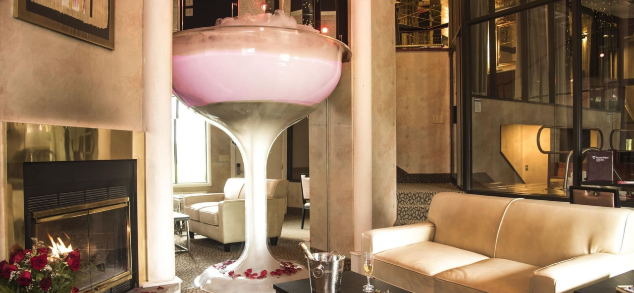 Znaleźliśmy ciekawy obiekt Cove Haven Resort w górach Pocono w Pensylwanii, który stwarza idealną atmosferę na romantyczny weekend. Możecie zanocować w apartamentach z jacuzzi w kształcie serca albo w spektakularnym apartamencie "szampańskim" z jacuzzi w kształcie kieliszka do szampana. Hotel ten oferuje w cenie również śniadanie oraz dodatki, takie jak tort w kształcie serca czy truskawki w czekoladzie, dzięki którym Państwa pobyt będzie wyjątkowy.