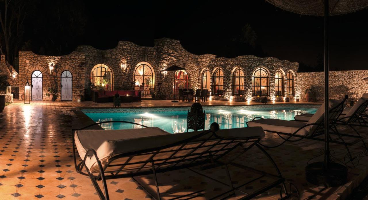 Jest tu także bar i restauracja (z tradycyjnymi daniami kuchni marokańskiej), a śniadania (w cenie) serwowane są w jadalni przy basenie z okazałym kominkiem.