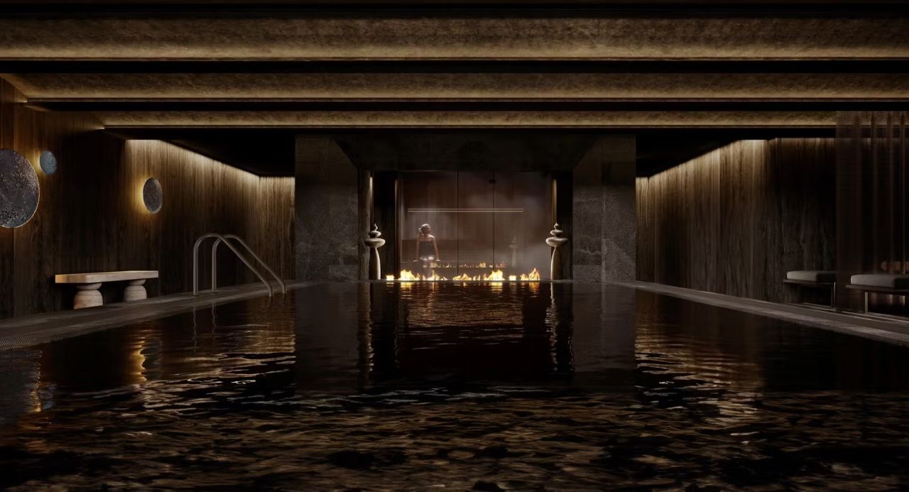 strefa wewn. z basenami (dwutorowym sportowym, płytkim dla dzieci, rekreacyjnym z rwącą rzeką, japońskim) + 3 zjeżdżalnie, 3 wanny z hydromasażem, strefa ciszy z widokiem na jezioro, strefa termalna z sauną i łaźnią parową, grota lodopad, caldarium