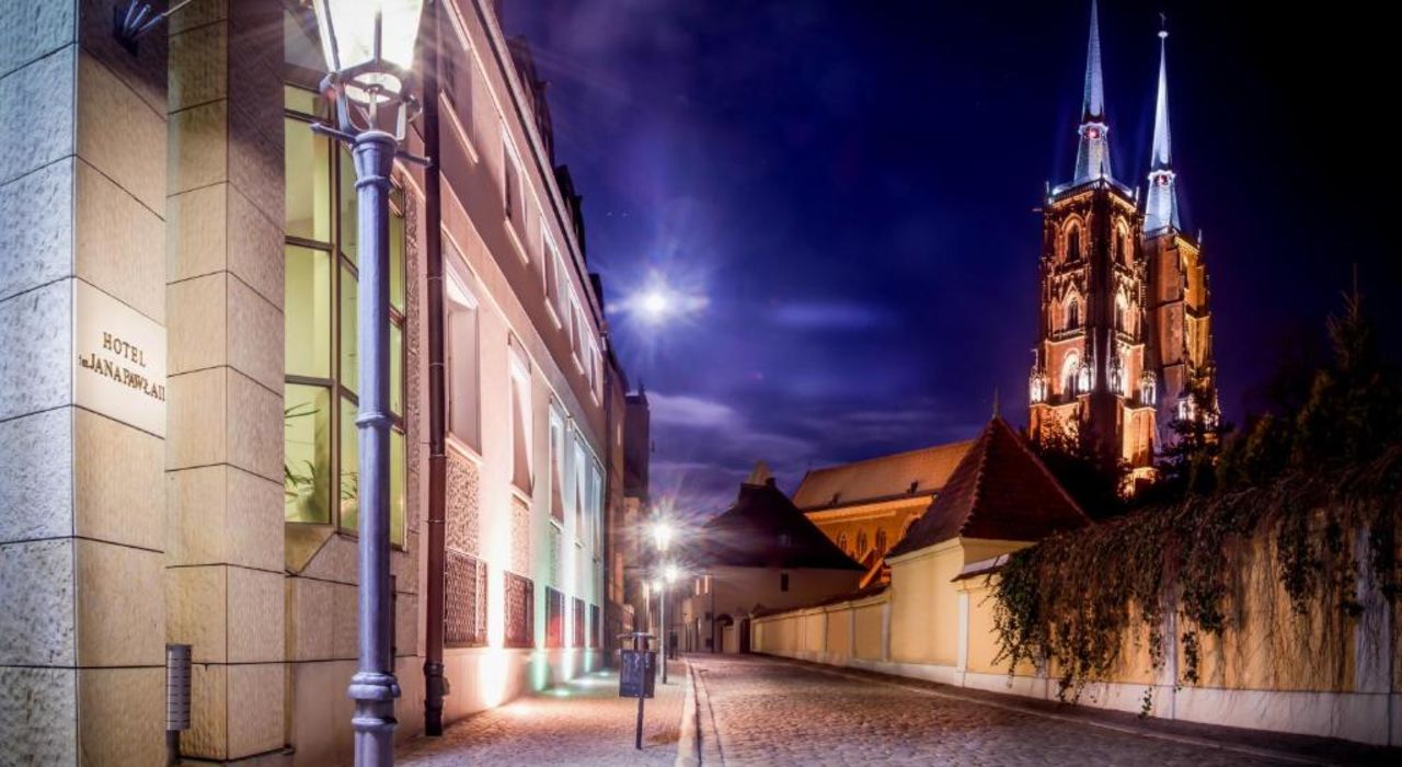 4* Hotel im. Jana Pawła II znajduje się na Ostrowie Tumskim - jednej z najpiękniejszych i najbardziej klimatycznych części Wrocławia. Tuż obok macie katedrę, bulwary nad Odrą, a do starówki dojdziecie spacerem w kilka minut.
