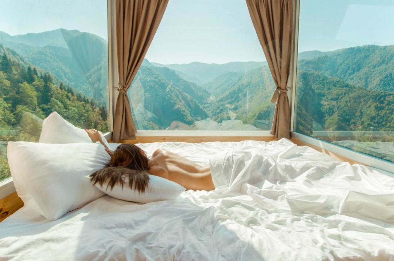 Rozmarzcie się patrząc na góry Adżarii w świetle słońca albo pod śnieżną pierzynką 👀☀️❄ z łóżka, jacuzzi, basenu albo huśtawki 🌄