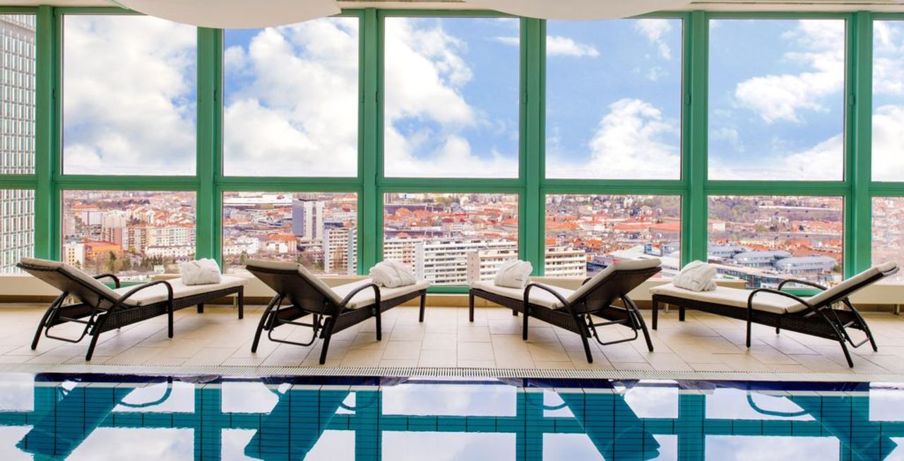 4* Panorama Hotel oferuje coś, czego nie ma większość hoteli - kryty basen z widokiem na miasto. Do tego sauna, siłownia i wygodne, klimatyzowane pokoje. Metro znajduje się zaledwie 200 metrów od hotelu, więc w 10 minut jesteście przy Placu Wacława.