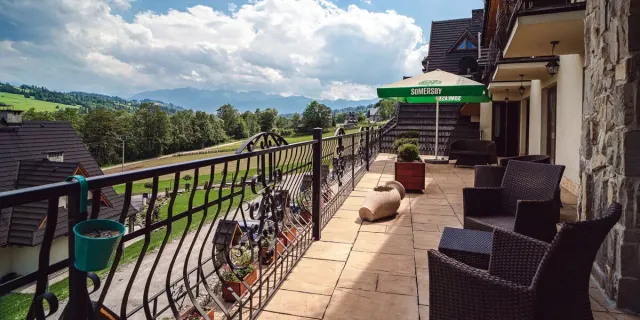 Obiekt położony jest na zboczu Pasma Gubałowskiego, niedaleko Zakopanego i Bukowiny Tatrzańskiej, w otoczeniu łąk, lasów i górskiego potoku. W cenie pobytu macie codzienne śniadania i obiadokolacje w formie bufetu, a także nielimitowany dostęp do strefy spa, w której zrelaksujecie się po całym dniu.