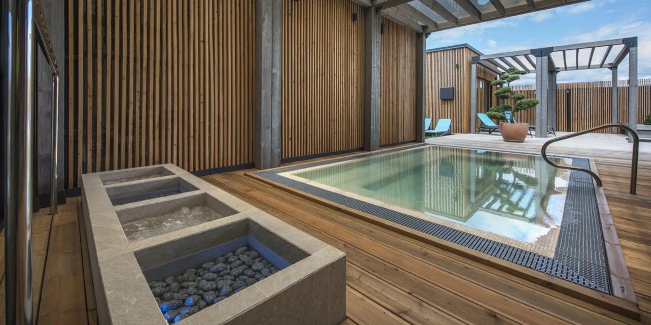 W strefie wellness odpoczniecie w saunach fińskiej, parowej i na podczerwień z wanną chłodzącą, w pokoju relaksacyjnym lub stylowo urządzonym jacuzzi na świeżym powietrzu z pięknym widokiem. Znajdziecie tam też prysznic lodowy i centrum fitness.