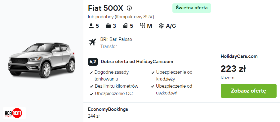 Suma: 497 zł / os przy 4 osobach podróżujących