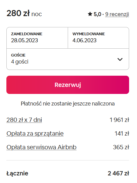 Suma: 681 zł / os przy 4 osobach podróżujących