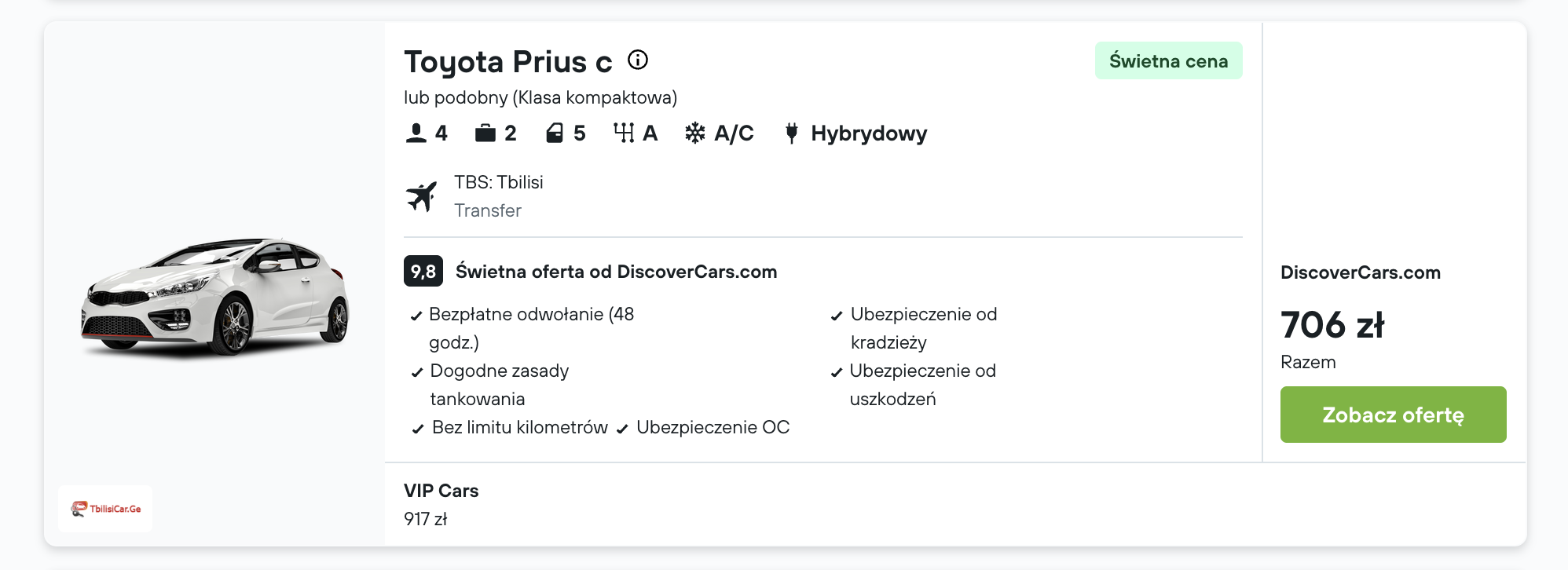 Dla wygody zwiedzania okolic Tblisi polecany wynająć auto na lotnisku już od 353 zł za osobę.