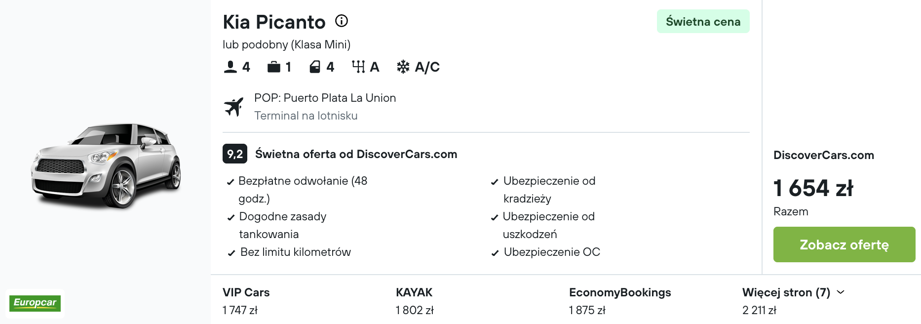 wynajem auta na cały pobyt: 827 zł/os