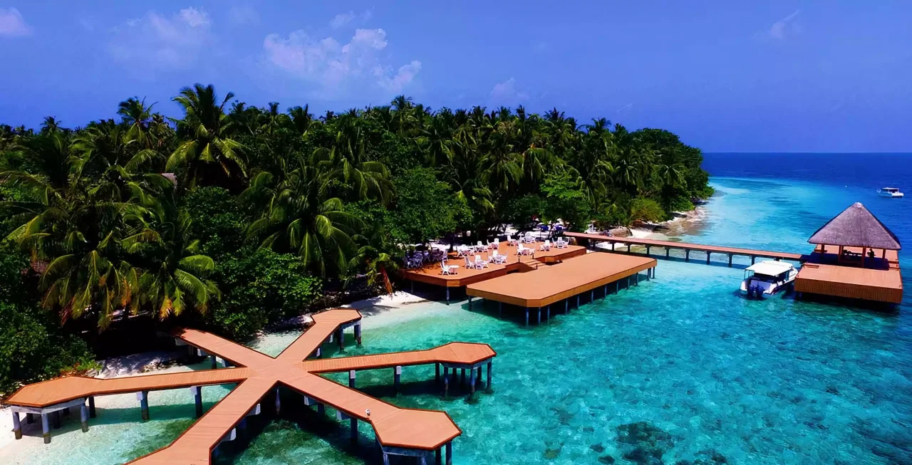 Proponujemy pobyt w czterogwiazdkowym Fihalhohi Island Resort, położonym na niewielkiej, zielonej wyspie otoczonej lazurową wodą. Przy hotelu znajduje się piękna, szeroka plaża, a tuż przy brzegu zaczyna się rafa koralowa – idealna do snorkellingu i podziwiania tropikalnego życia morskiego.