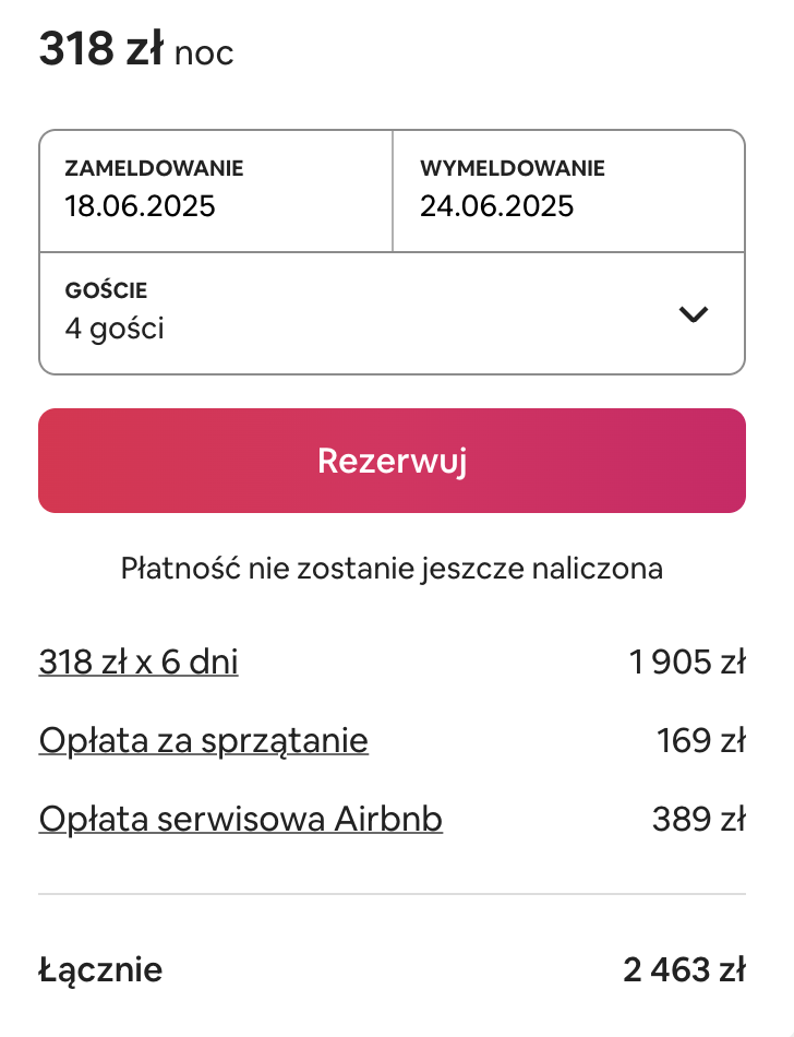 Suma: 1019 zł / os przy 4 osobach podróżujących