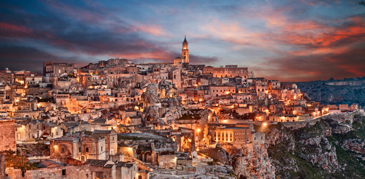 Matera - włoskie miasto wpisane na listę UNESCO to prawdziwa podróż w czasie. Przez kilka niezapomnianych dni będziesz mieszkać w autentycznych domach wydrążonych w skale, spacerować uliczkami, które pamiętają czasy sprzed 9000 lat, i doświadczać niezwykłej włoskiej kultury w jej najczystszej, pierwotnej formie.