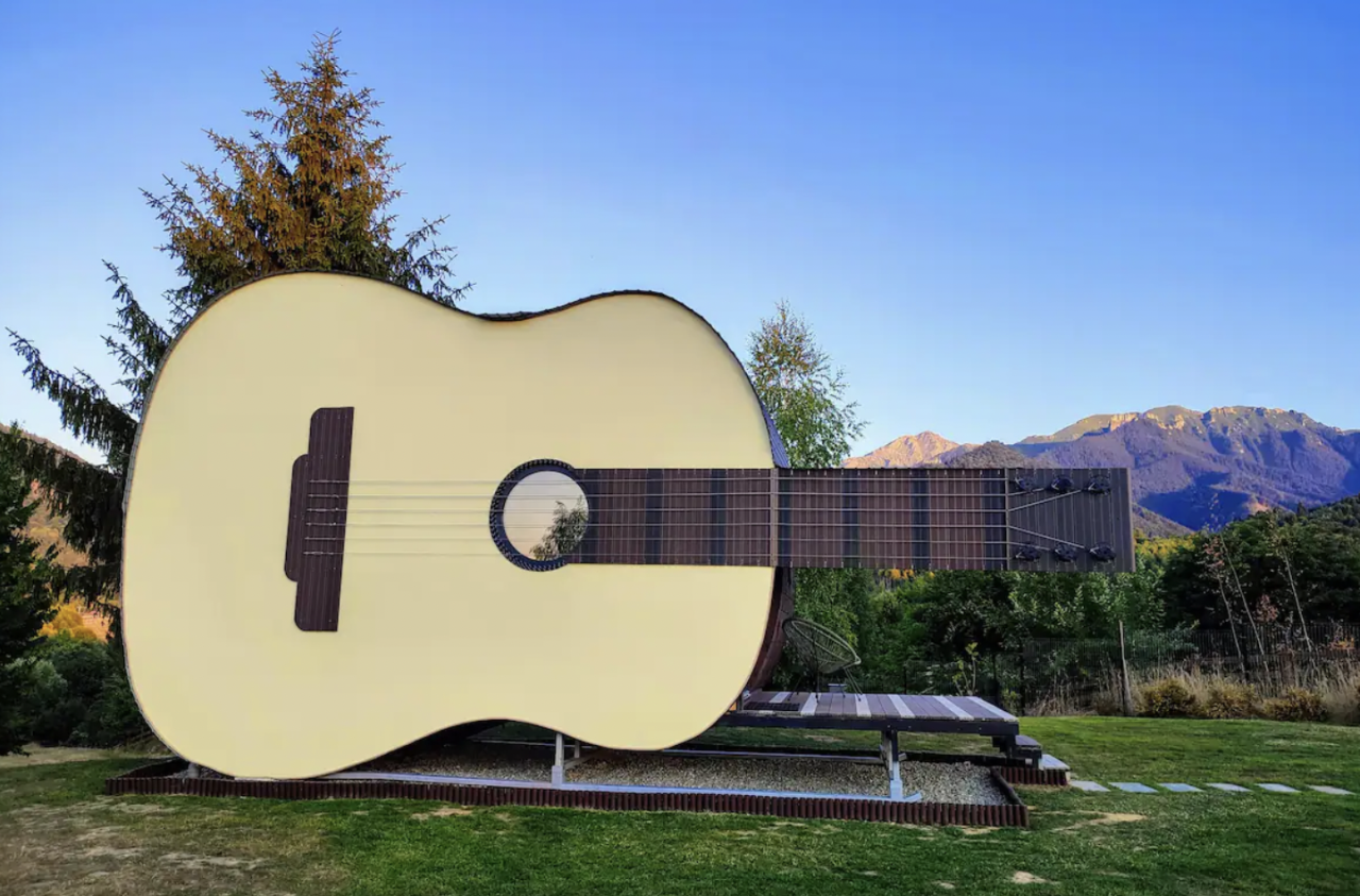 odwiedźcie ten niezwykły domek położony w pobliżu miasta Brașov w Rumunii. To idealne miejsce dla fanów muzyki, którzy chcą podążać za swoją pasją i chcieliby zrobić sobie odpoczynek... W ŚRODKU gitary!