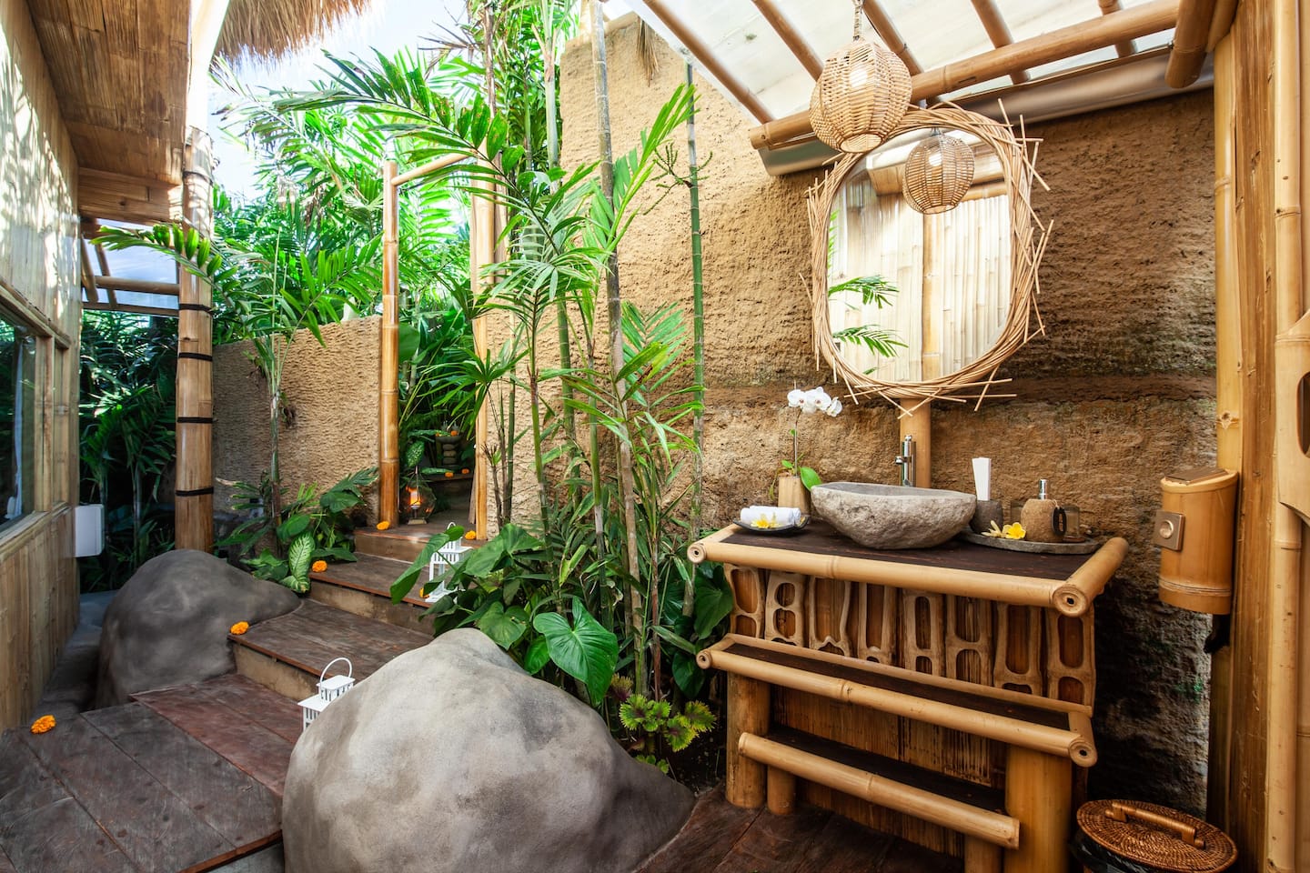 Witamy w Magic Hills Bali — luksusowej dwupiętrowej eko-willi wykonanej z bambusa, położonej pośród bujnych tarasów ryżowych Bali, nieco ponad godzinę jazdy od Ubud.